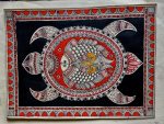 A traditional motif in Bihar’s Mithila painting style, the tortoise is illustrated using detailed linework and natural colors, giving the piece depth and vibrancy.