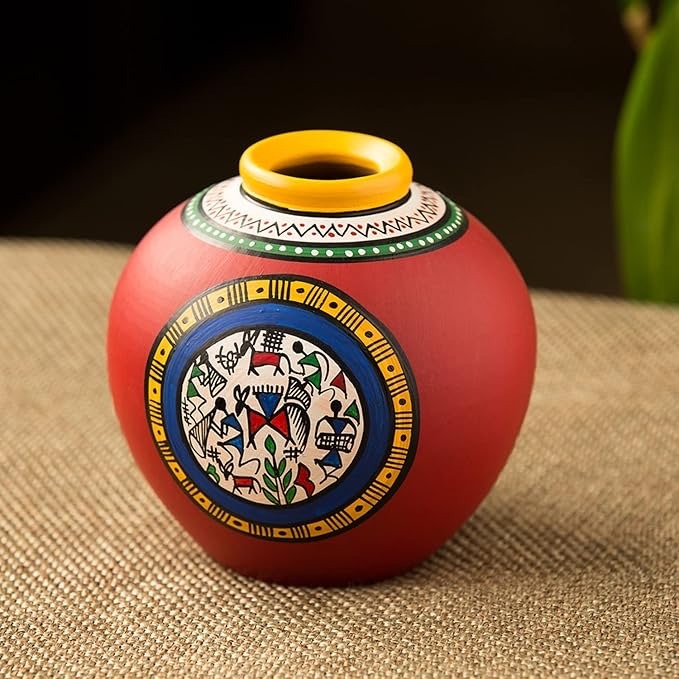 Add a touch of elegance to your home decor with these beautiful leafy Warli tales hand-painted terracotta vases. Made from high-quality terracotta, they feature intricate designs and a durable build. Ideal for gifting and home decor, these vases are a perfect addition to any setting.