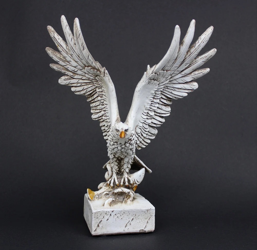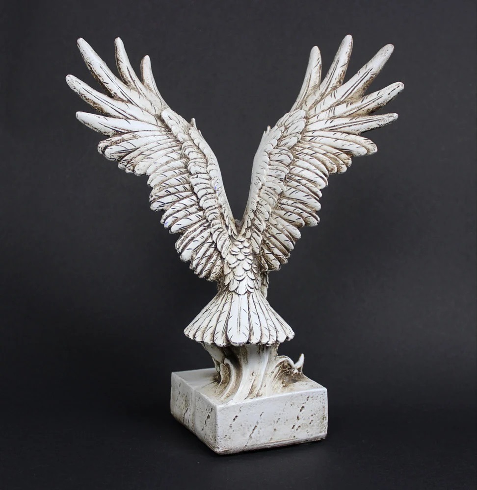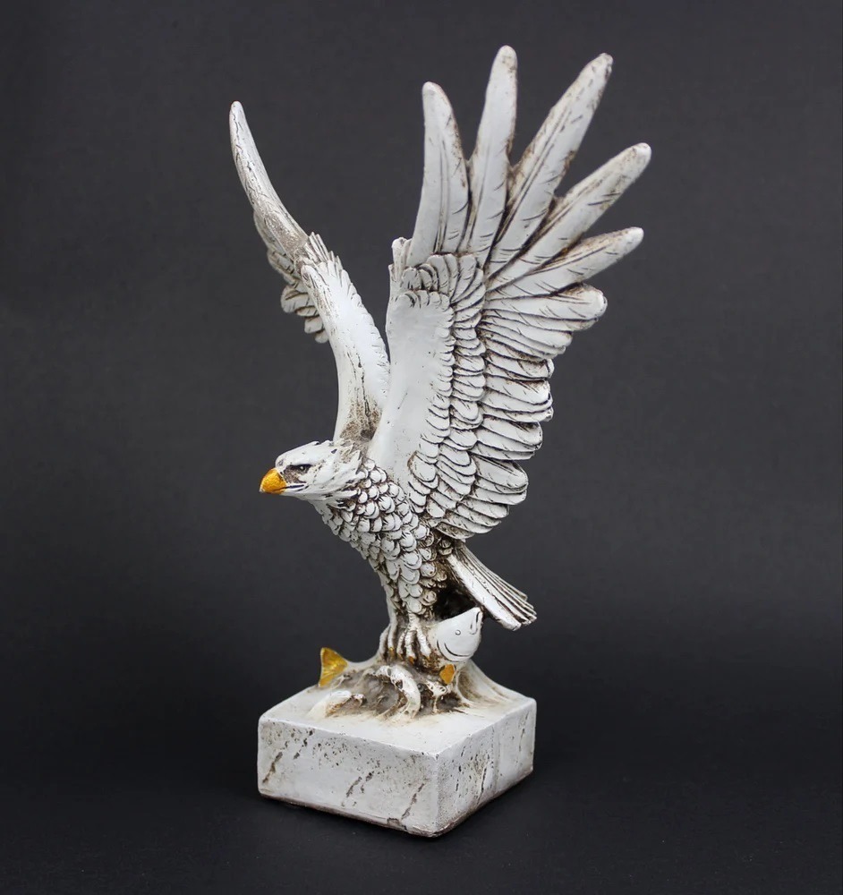 Enhance your home decor with this elegant resin eagle statue. Crafted from high-quality resin, it features intricate designs and a durable build. Ideal for table ascent and gifting, this statue adds a touch of sophistication to any space.