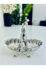 Elevate your hosting experience with this Silver-Plated Folding Décor Tray, a perfect blend of elegance and utility.; Crafted with intricate detailing and a premium silver-plated finish, this tray is both versatile and eye-catching.; Its folding design makes it easy to store and convenient to use, while the artistic charm ensures it stands out as a centerpiece.; Whether you’re serving guests, arranging sweets and dry fruits, or gifting it on special occasions, this tray adds sophistication to every moment.; Material: High-quality silver-plated finishDesign: Folding structure for elegance and practicalityUses: Serving, festive décor, or giftingOccasions: Diwali, weddings, anniversaries, or housewarmings✨ A timeless piece to celebrate life’s special gatherings with charm and style.