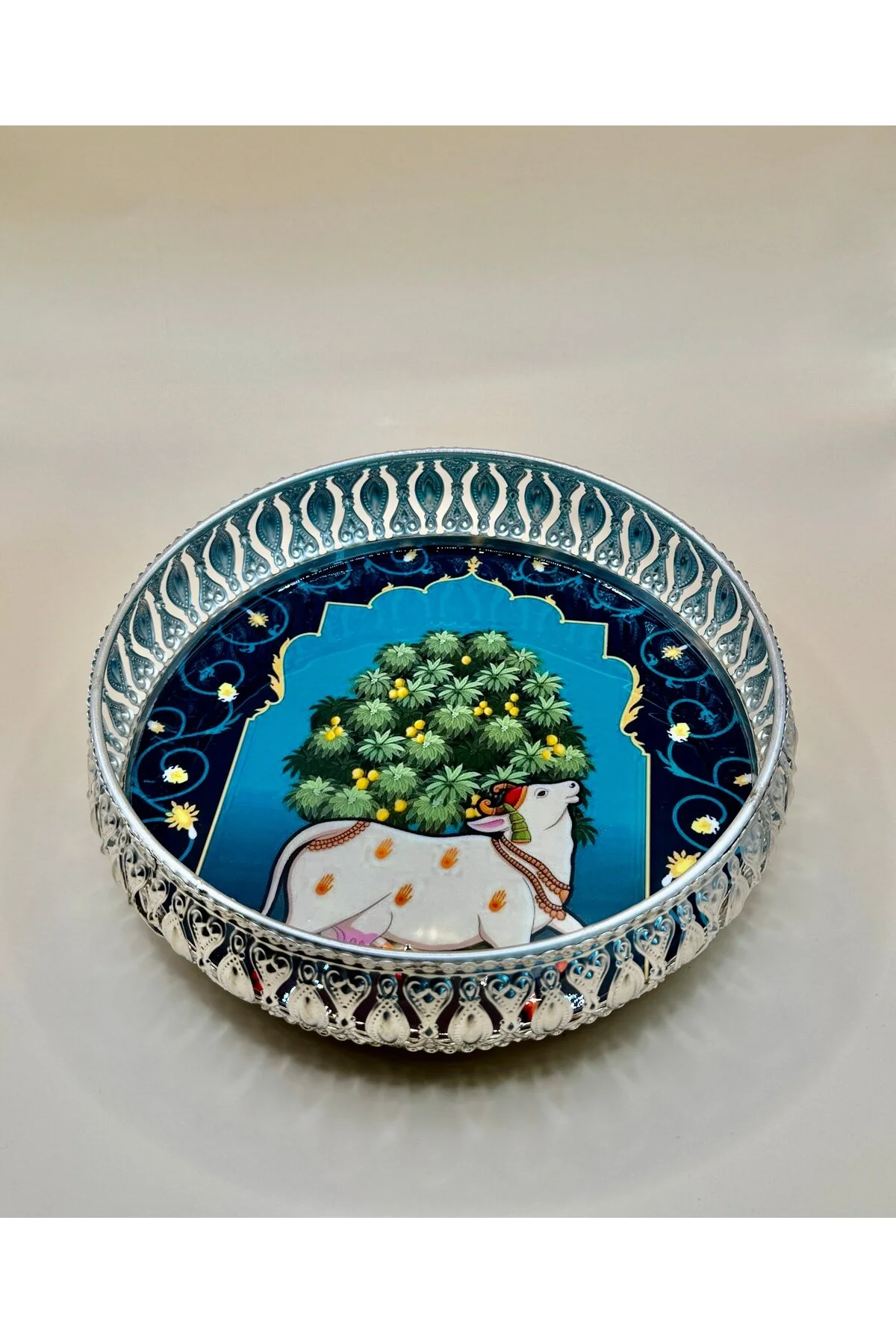 Bring timeless elegance into your home with this Artistic Silver Plated Tray, designed with exquisite floral motifs and majestic detailing.; Its premium finish makes it ideal for serving guests in style, decorating your living space, or presenting as a thoughtful gift for weddings, anniversaries, or festive occasions.; Durable yet elegant, this tray blends tradition with modern aesthetics, adding a luxurious touch to every moment.; Material: Silver Plated (high-quality finish)Design: Floral pattern with intricate craftsmanshipUse: Serving, home décor, or giftingOccasions: Ideal for Diwali, weddings, housewarming, or special celebrations