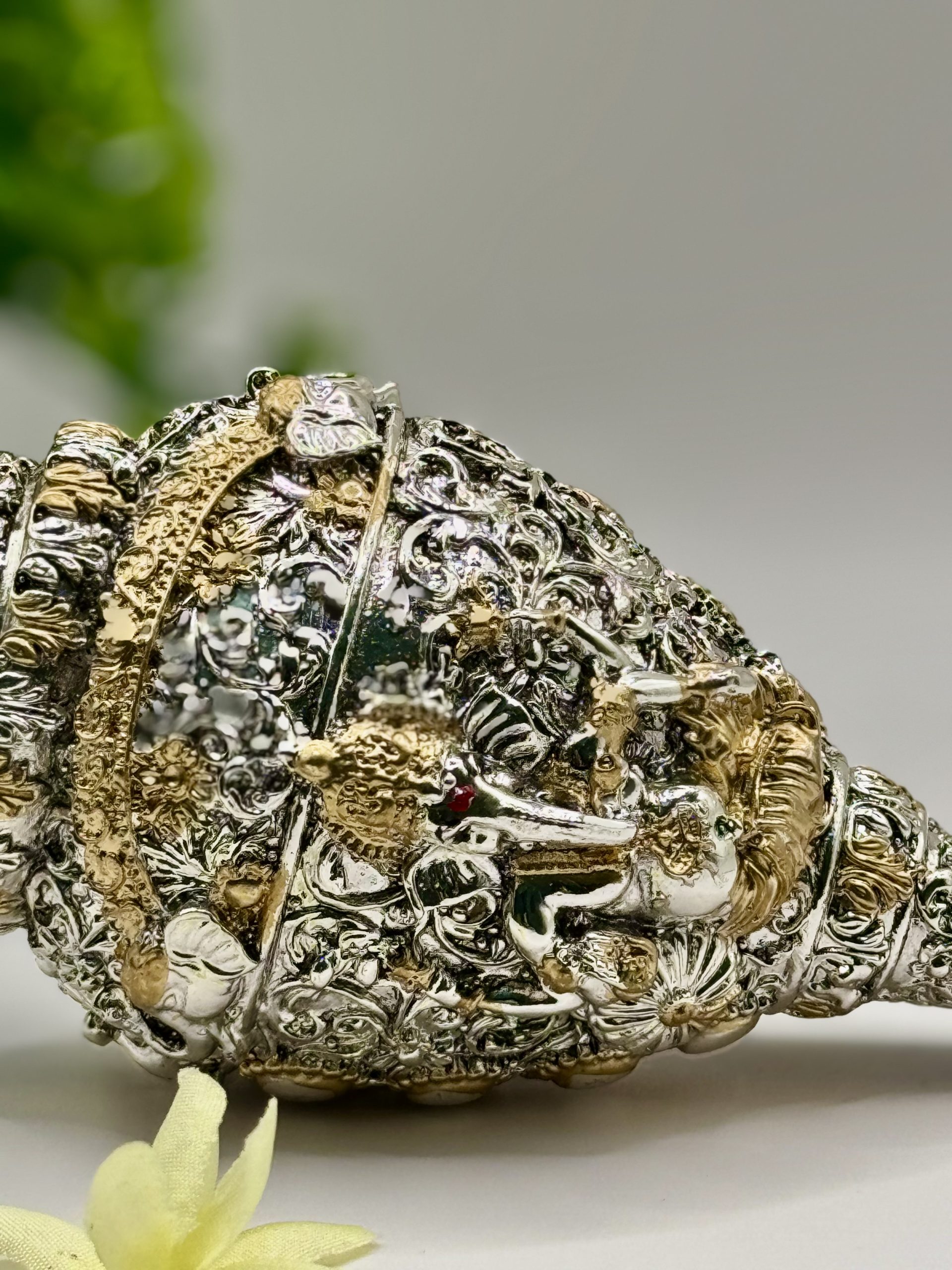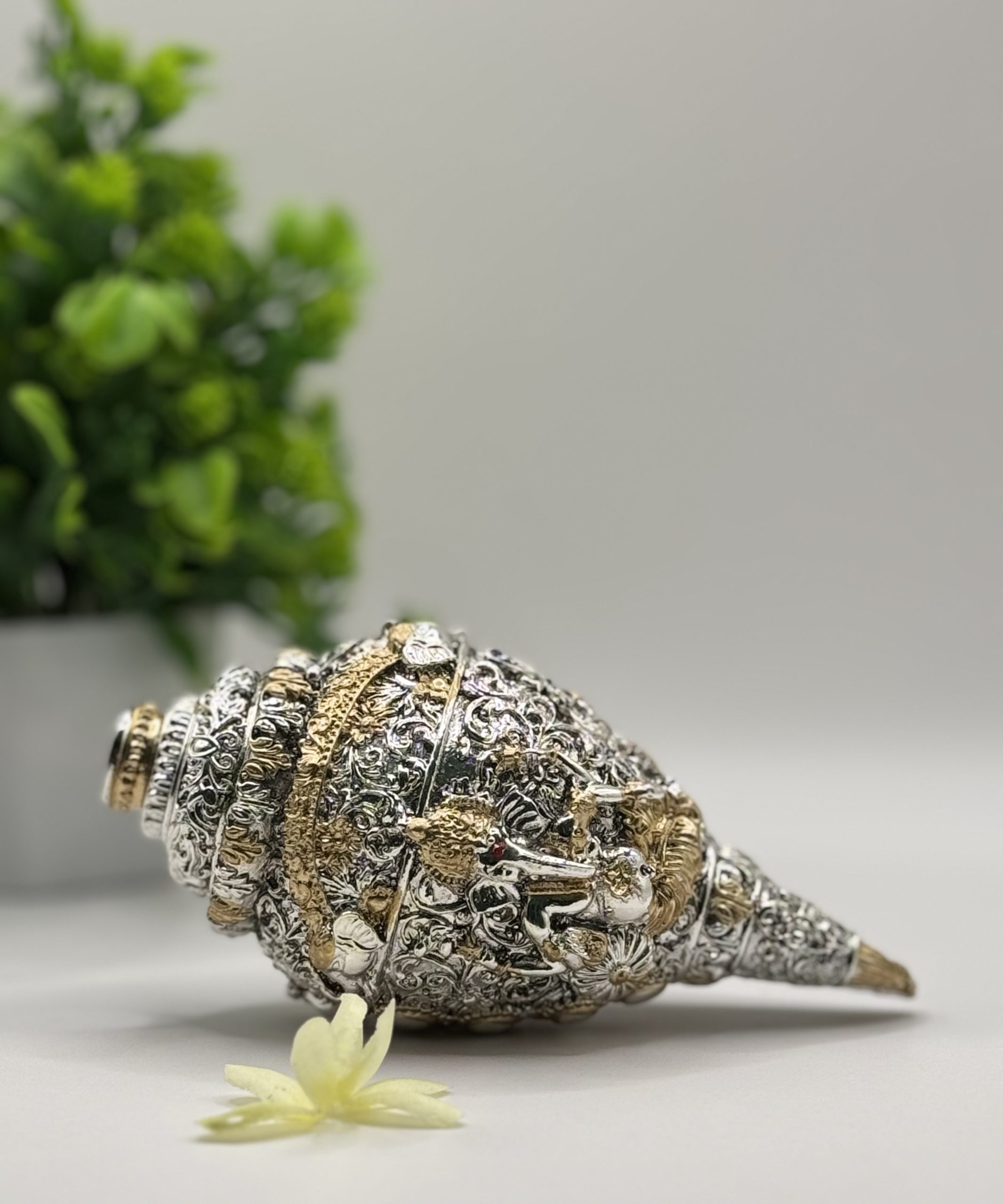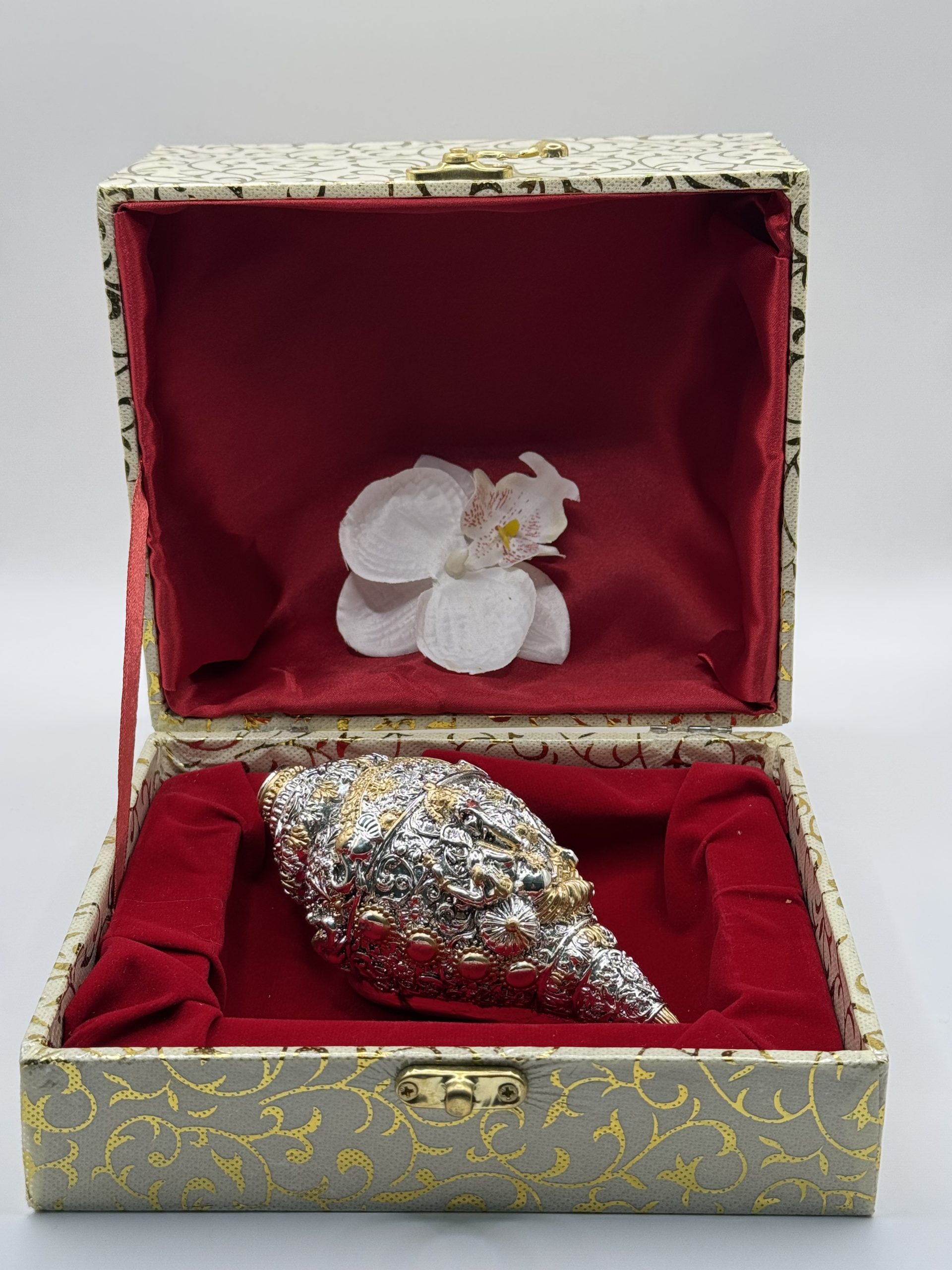 Elegant silver sankh with gifting box.