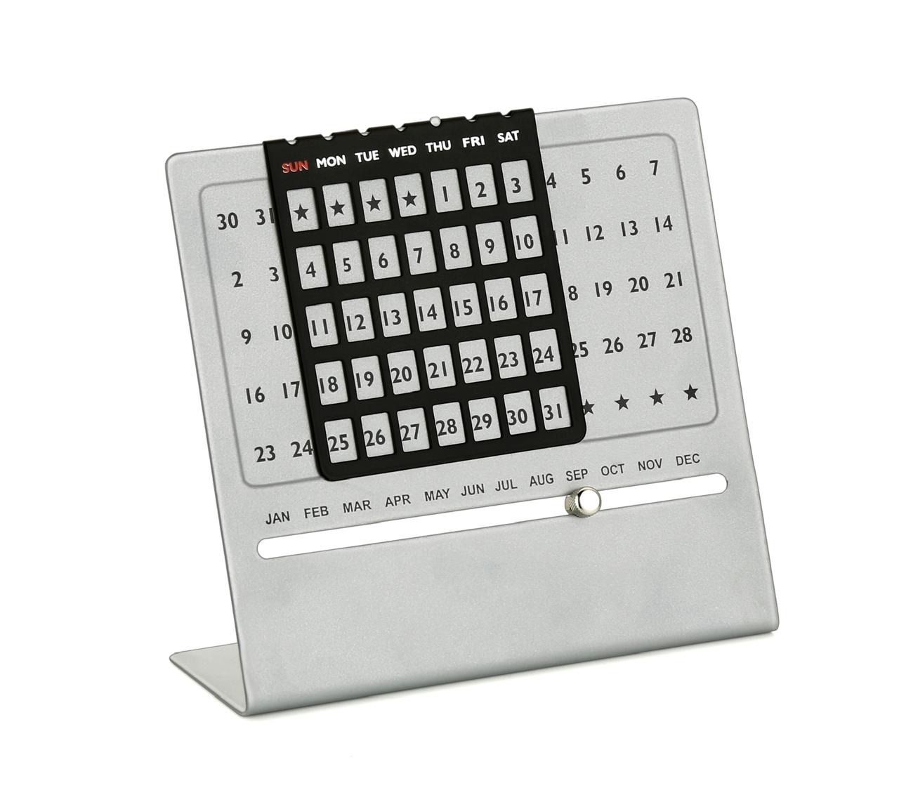 Brush Steel Big Perpetual Table Calendar Sliding Moth Style