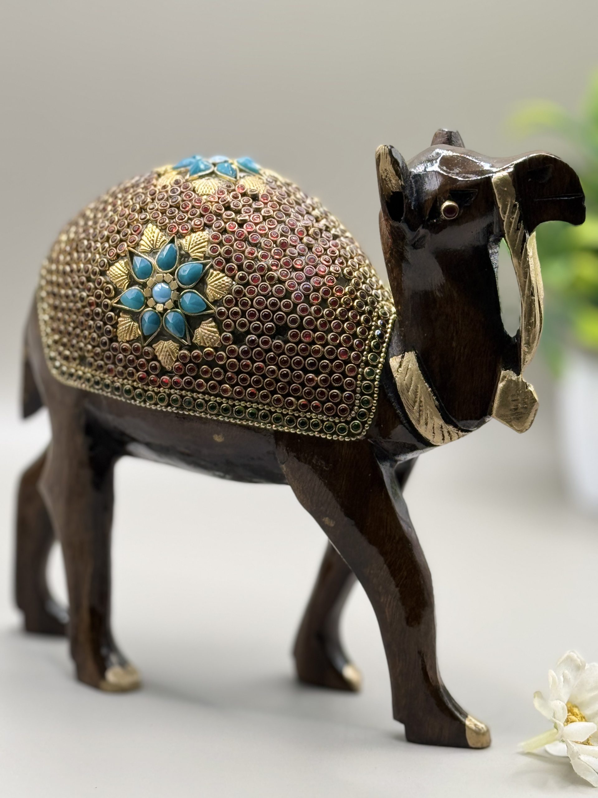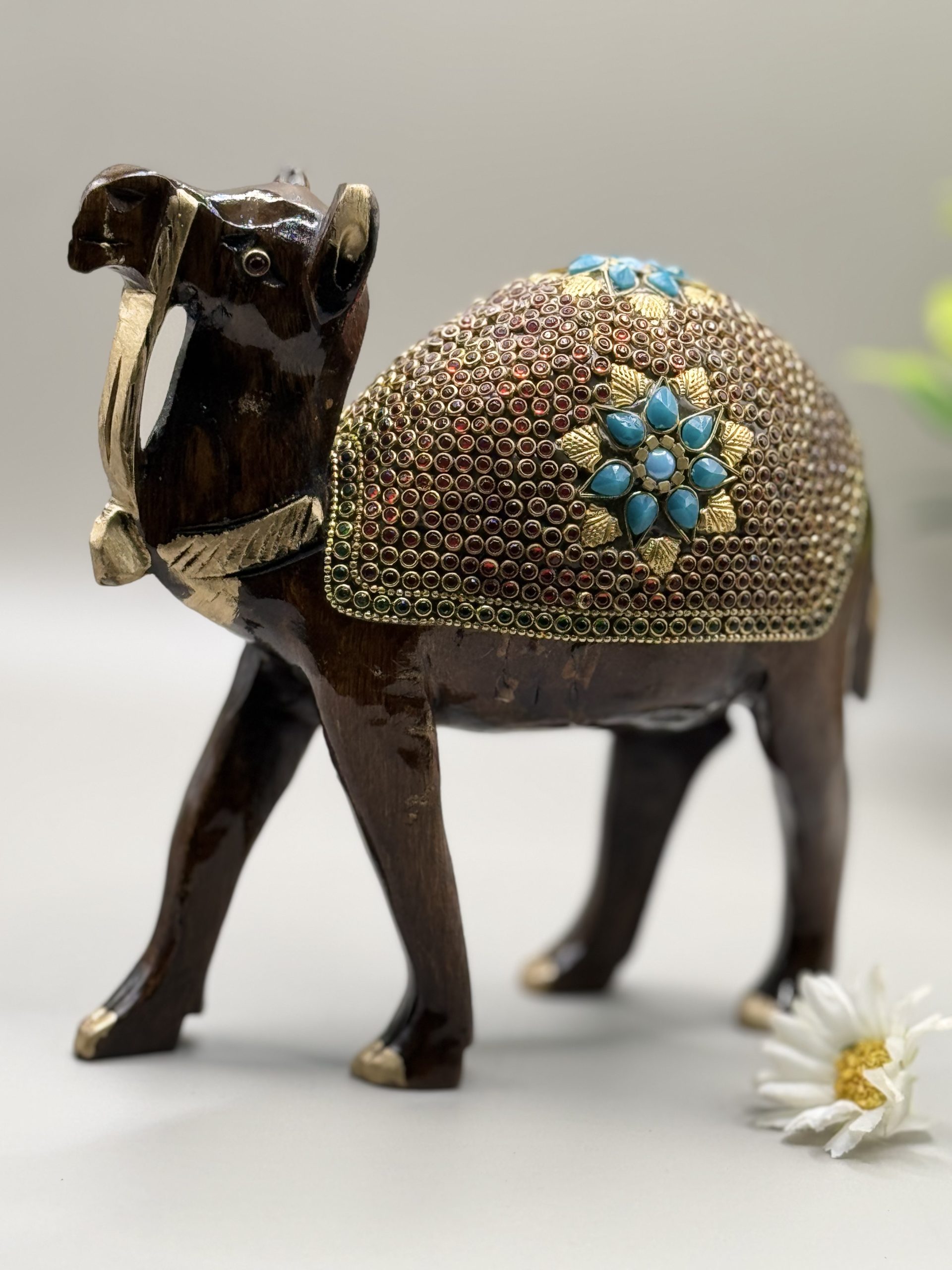 Beautiful wooden camel set with stone work.